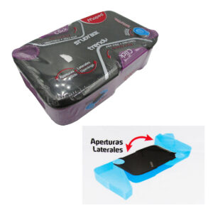 – Estuche plástico resistente, la tapa esta diseñada para usarse como godete