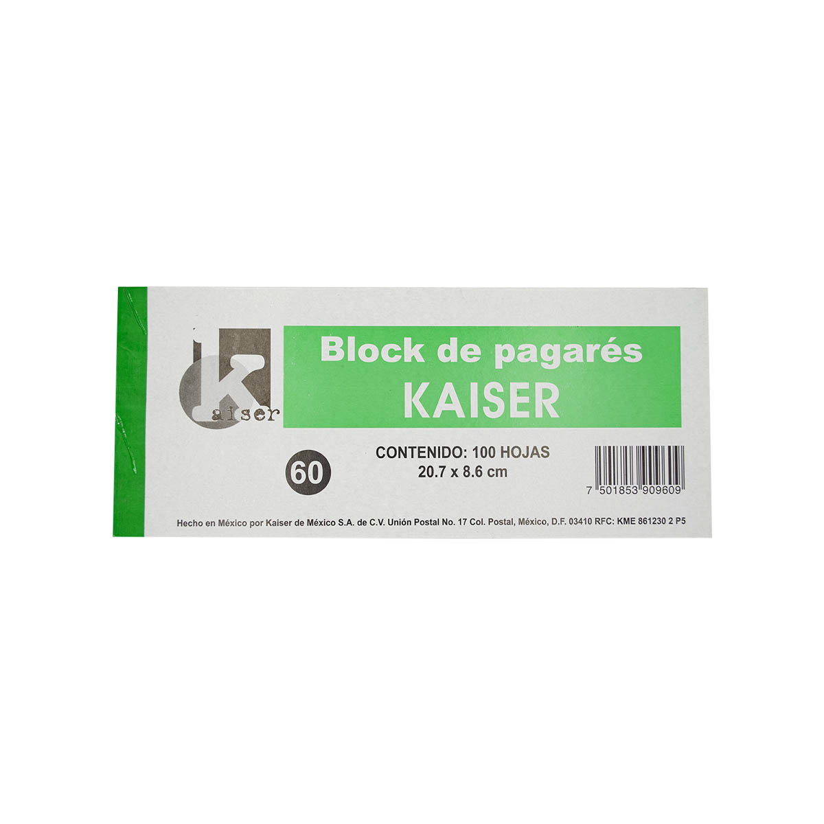 Block de pagarés Kaiser Block engomado Contenido 100 hojas Medida: 20.7 x8.6 cm