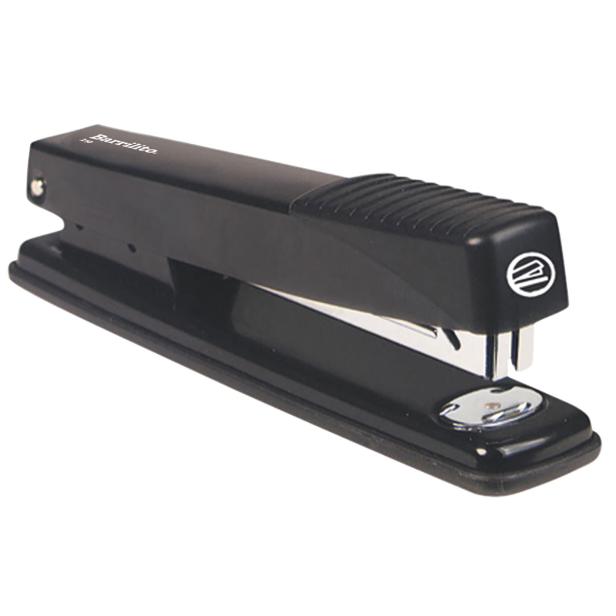 Engrapadora Barrilito 210 tira completa. Fabricada en acero de alta calidad. Matriz giratoria para engrapado abierto o cerrado. Multifuncional (escritorio y pared suave). Capacidad de tira completa de grapas estándar 26/6. Indicador de realimentación de grapas. Acercagrapas retráctil automático.