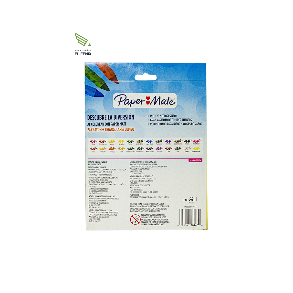 • Crayones Paper Mate Jumbo con 24 colores triangulares.