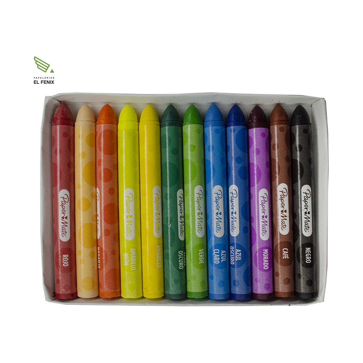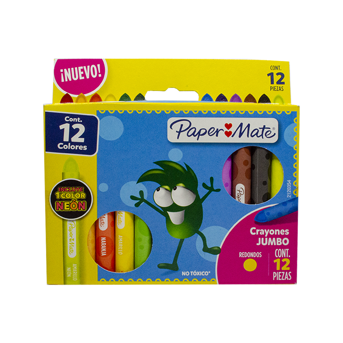 • Crayones Paper Mate Jumbo con 12 colores redondos.