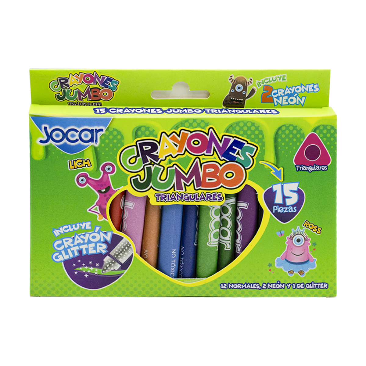 Crayones de cera de gran calidad, súper suaves, colores brillantes, forma triangular ergonómica, tamaño jumbo ideales para preescolar.