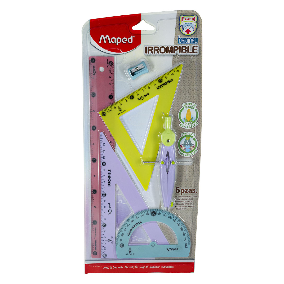 • Fabricado con 20% bioplástico de maíz, opción más amigable con el medio ambiente