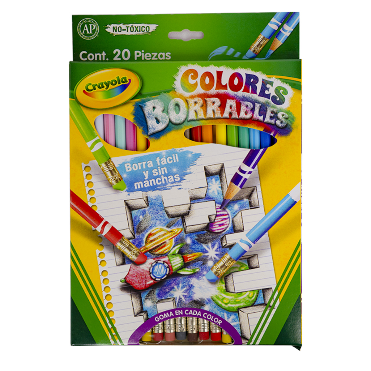 • Set de 20 lápices de colores borrables, ideales para corregir y volver a colorear.
