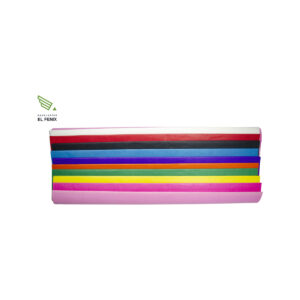 Papel delgado y ligero, con textura metálica en color, se puede usar como papel de envoltura, para manualidades infantiles, y para hacer decoraciones para fiestas