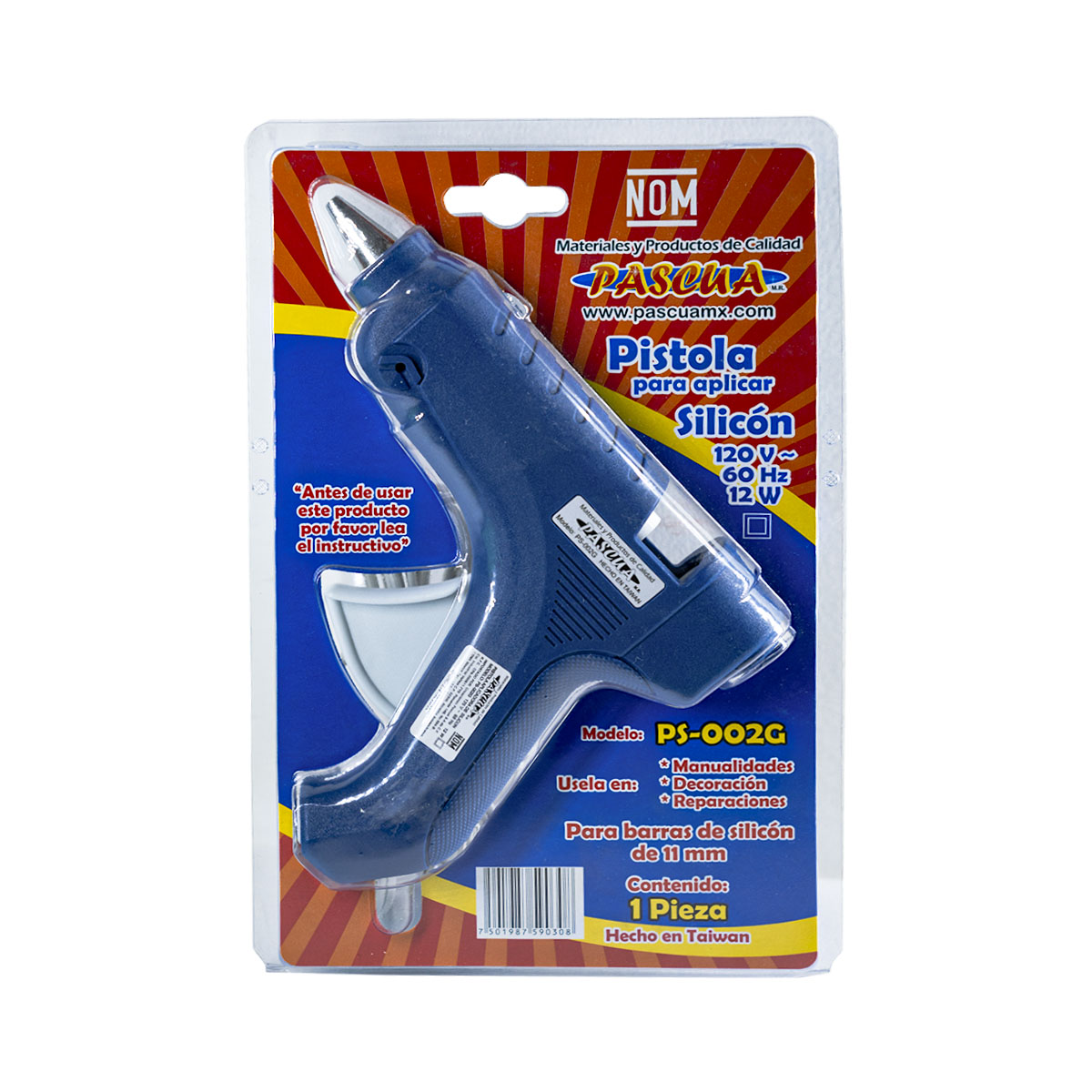 Pistola para barras de silicón de 7 mm, ideal para manualidades.