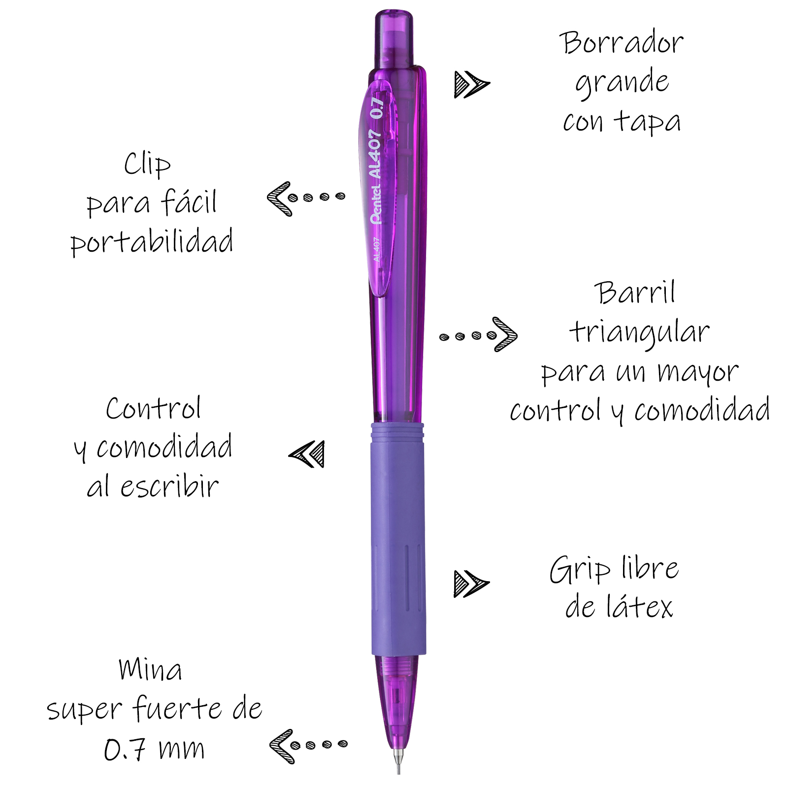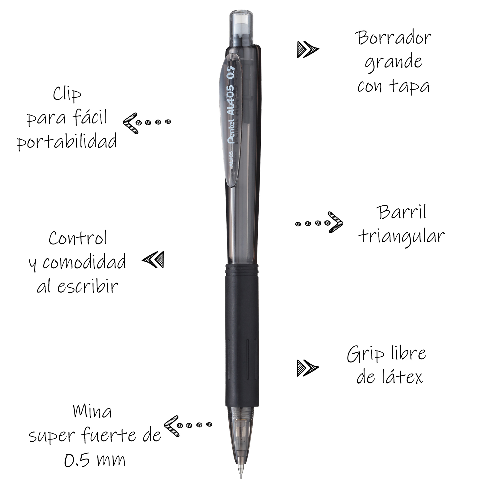 Portaminas de 2 mm, grip de caucho triangular, mina resistente.